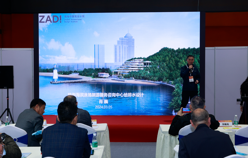 珠海市建筑設計院給排水總監 ,高級工程師肖巍先生做了《珠海海濱泳場旅游服務咨詢中心給排水設計》主題報告;